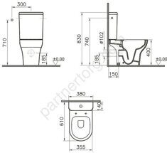 Размер: 83х38х61 см. Выпуск горизонтальный. Сидение: дюропласт с микролифтом