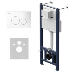 Универсальный подвод воды к бачку - боковой справа/верхний. - монтажная коробка для окна обслуживания - для удобства отделочных работ. - все необходимые патрубки и крепления. - прокладка между унитазом и стеной - звукоизоляция. - механическая клавиша из ABS-пластика в белом цвете.
