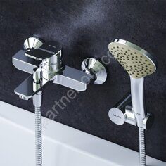 Дизайн в котором учтены все детали: благодаря уникальной форме ручки капли воды скатываются предотвращая образование налета а не высыхают на поверхности. Керамический картридж SoftMotion 35 мм обеспечивает широкую зону движения ручки для оптимальной регулировки температуры и напора а также позволяет выдерживать любые перепады давления. Переключение режимов «ванна-душ» больше не доставит хлопот: идеальное сочетание пневматического переключения с механическим срабатывает безукоризненно в 100% случаев даже при низком напоре воды. В комплекте душевой набор: стильный ручной душ 120 мм 3 режима настенный держатель с регулировкой угла наклона душевой шланг с защитой от скручивания.