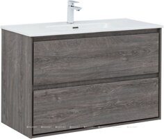 Милан 100 тумба дуб рустикальный для ванной комнаты с раковиной-столешницей Flat 100 Aquanet