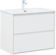 Милан 80 тумба белый глянец для ванной комнаты с раковиной-столешницей Flat 80 Aquanet
