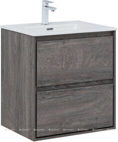 Милан 60 тумба дуб рустикальный для ванной комнаты с раковиной-столешницей Flat 60 Aquanet