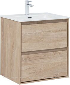 Милан 60 тумба дуб светлый для ванной комнаты с раковиной-столешницей Flat 60 Aquanet