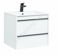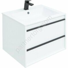 Размер тумбы: 60х46х52 см. Цвет: белый глянец. Комплект: 2 ящика, раковина-столешница Flat 60