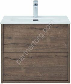 Размер тумбы: 59х49,5х53 см. Цвет: дуб веллингтон. Комплект: 2 ящика, раковина-столешница Flat 60