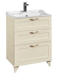 Размер (см): 79,6х65х44,7. Цвет: дуб бежевый. Комплект: ручка - 3 шт., Регулируемый навес - 2 шт., Выдвижной ящик (направляющие с интегрированной системой плавного закрывания) - 3 шт.. Раковина Фабиа 65