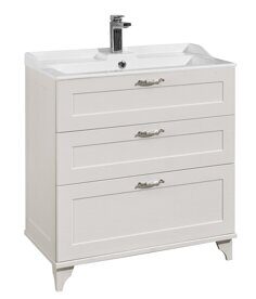 Комплект поставки: ручка - 3 шт., Регулируемый навес - 2 шт., Выдвижной ящик (направляющие с интегрированной системой плавного закрывания) - 3 шт.. Раковина Фабиа 80
