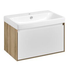 Либерти 70 см тумба подвесная дуб эльвезия/белый глянец для ванной комнаты с раковиной Адриана 70 Aquaton