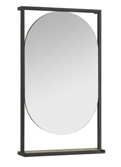 Зеркало Лофт Фабрик в размере 50 отличается необычным оригинальным дизайном и удобным функционалом. Черные металлические профили в форме прямоугольника обрамляют овальное зеркало, под которым находится полочка из влагостойкой ламинированной плиты в цвете Дуб Эндгрейн. Открытая полочка удобна для косметических и декоративных мелочей, которые всегда должны быть под рукой.