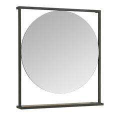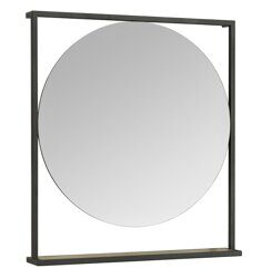 Зеркало Лофт Фабрик в размере 80 отличается необычным оригинальным дизайном и удобным функционалом. Черные металлические профили обрамляют круглое зеркало, под которым находится полочка из влагостойкой ламинированной плиты в цвете Дуб Эндгрейн. Открытая полочка удобна для косметических и декоративных мелочей, которые всегда должны быть под рукой.