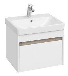 Размер (см): 40х53,2х42,7. Цвет: белый/дуб эндгрейн. Комплект: регулируемый навес - 2 шт., Выдвижной ящик (направляющие с интегрированной системой плавного закрывания) - 1 шт.Раковина Адриана 55