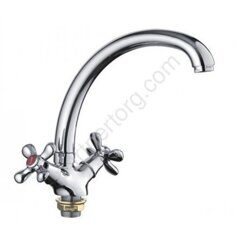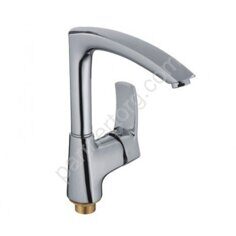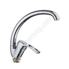 Цвет: хром. На одно отверстие, на гайке. Излив поворотный, высокий, 35 см. Материал: латунь. В комплекте: гибкая подводка 1/2
