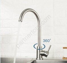 Цвет: сатин. На одно отверстие, на гайке. Излив поворотный, высокий, 25 см. Материал: нержавеющая сталь. В комплекте: гибкая подводка 1/2