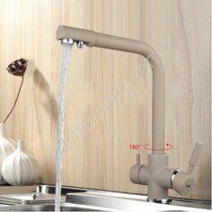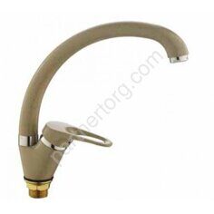 Цвет: бежевый. На одно отверстие, на гайке. Излив поворотный, высокий, 30 см. Материал: латунь. В комплекте: душевой шланг 150 см, душевая лейка, держатель лейки, комплект отражателей, комплект эксцентриков