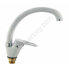 Цвет: гранит белый. На одно отверстие, на гайке. Излив поворотный, высокий, 25 см. Материал: латунь. В комплекте: гибкая подводка 1/2