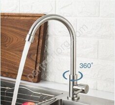 Цвет: хром. На одно отверстие, на гайке. Излив поворотный, высокий, 35 см. Материал: нержавеющая сталь. В комплекте: гибкая подводка 1/2