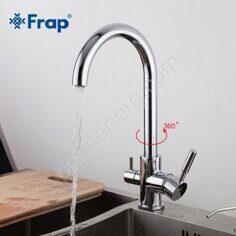 Цвет: хром. На одно отверстие, на гайке. Излив поворотный, высокий, 20 см. Материал: силумин. В комплекте: гибкая подводка 1/2