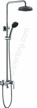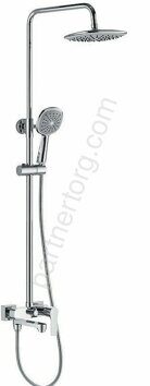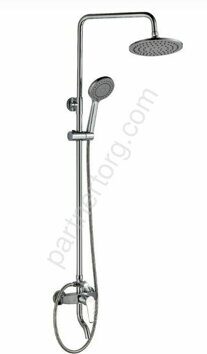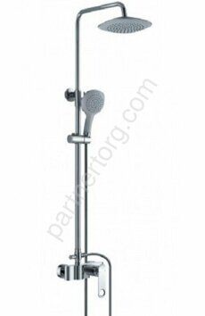 Смеситель: Латунь. Цвет хром. С коротким поворотным изливом. Штанга: Латунь.  Высота регулируемая - 988-1588 мм. Верхний душ: ABS-пластик. Регулируемый. Круглый. Диаметр 250мм.  Ручная лейка: 1 режим. Пластик.