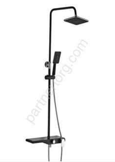 Смеситель: Латунь. Цвет Черный. С коротким поворотным изливом. Штанга: Латунь.  Высота регулируемая - 988-1588 мм. Верхний душ: ABS-пластик. Регулируемый. Круглый. Диаметр 260мм. С функцией "Тропический дождь" Ручная лейка: 2 режима. Пластик.  Душевой шланг, растяжной 1,5 м, с функцией вращения лейки без перекручивания (Turn-Free)