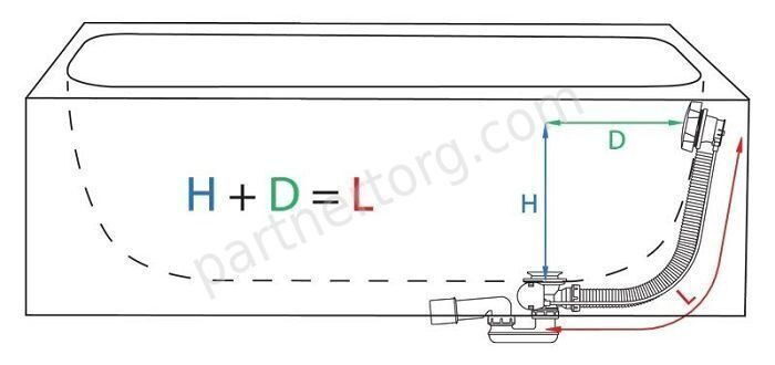 Слив-перелив AlcaPlast A55K-60 полуавтоматический для ванн, максимальная длинна гофры составляет 60 см, поворотная головка– металл с хромированной поверхностью, хромированная пробка - диаметр 45 мм, гидрозатвор является составной частью упаковки.