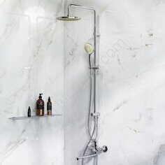 • Аксессуары в комплекте (верхняя душевая лейка «Тропический дождь», 3-функциональная лейка, регулируемое по высоте крепление для лейки, полочка для душевых принадлежностей, душевой шланг 1,5 м)
