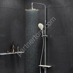 Увеличенный диаметр душевых леек (верхний душ 254 мм и ручной душ 120 мм) позволит ощутить преимущества тропического душа тогда как увеличенная длина шланга 1750 мм обеспечит свободу движений во время принятия душа. Телескопическая поворотная штанга регулируется по высоте в диапазоне от 1030 до 1460 мм