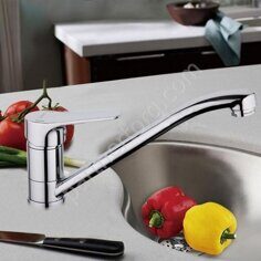 Смеситель для кухни, латунь. Увеличенное никель-хромовое покрытие. Пластиковый аэратор Neoperl. Картридж Softap 35 мм. В комплекте: гибкая подводка, крепеж.