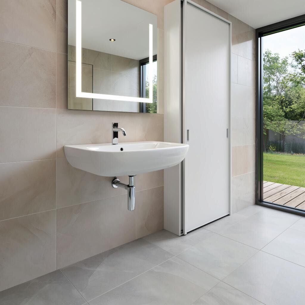 Хотя тумба кажется «тяжёлой» конструкцией, современные компактные модели могут быть очень узкими — от 35 см в ширину — и глубокими (до 50 см), что делает их практичными даже в маленьком санузле. Преимущества: