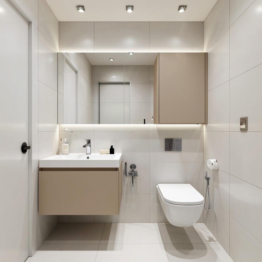Принцип №2: Выбирайте мебель с учётом геометрии помещенияНе все маленькие ванные одинаковы. Одни — узкие и вытянутые, другие — почти квадратные, третьи — с нишами или выступами. Поэтому универсальных решений не существует. Вот как адаптировать мебель под разные планировки: Узкая ванная (например, 1,2 × 2,5 м)