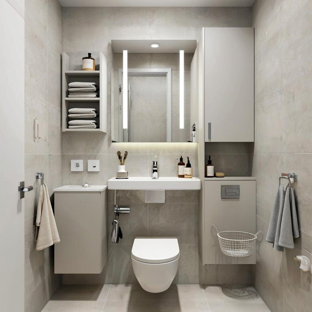Если ваша ванная большая (более 6–8 м²), рассмотрите встроенные шкафы-купе или модульные системы. Это лучший способ организовать хранение всей семьи: