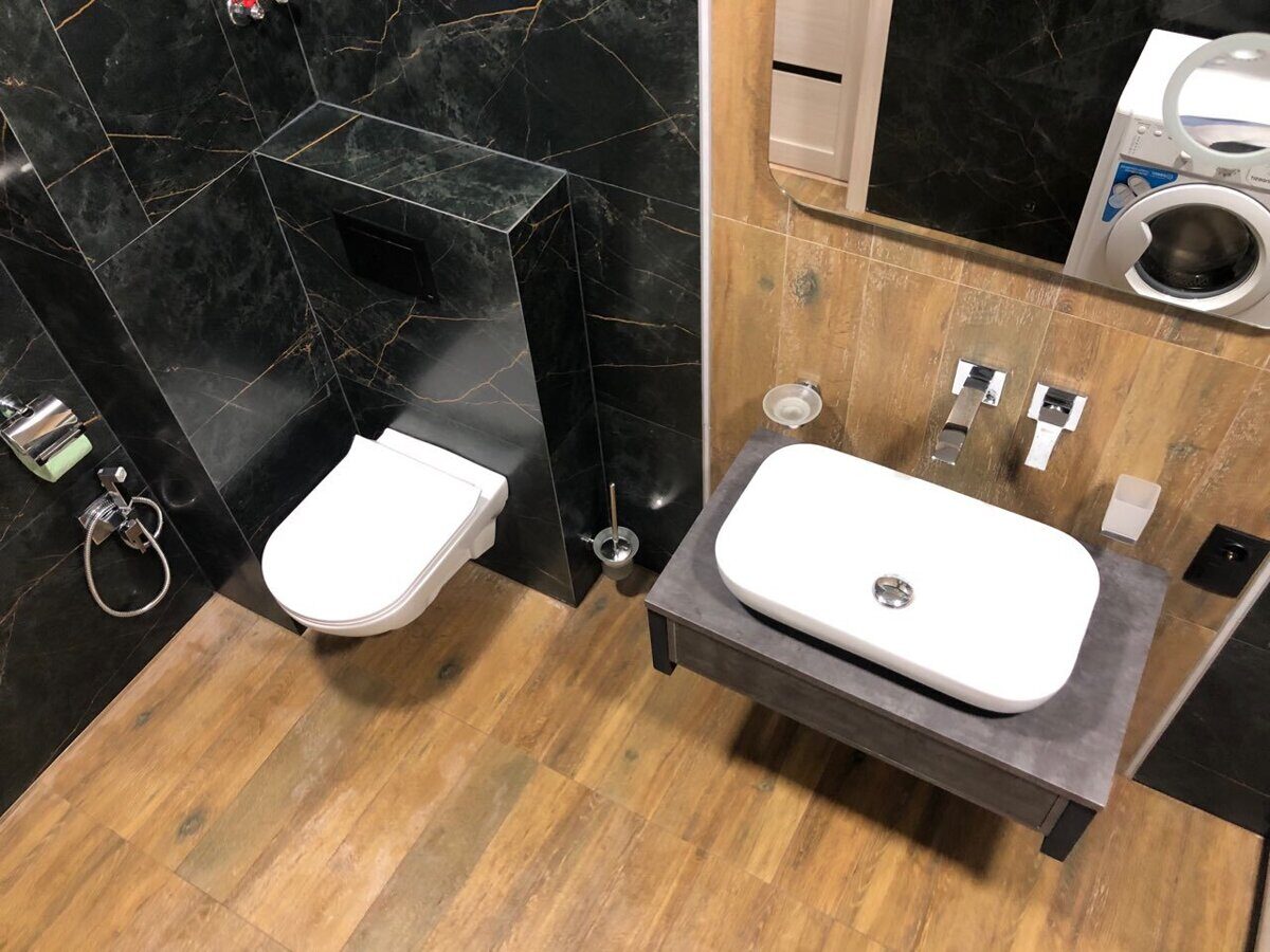 Проект № 5 Совмещенный санузел: Черный мрамор и дерево 1,7х3х2,7м, 5.1 м