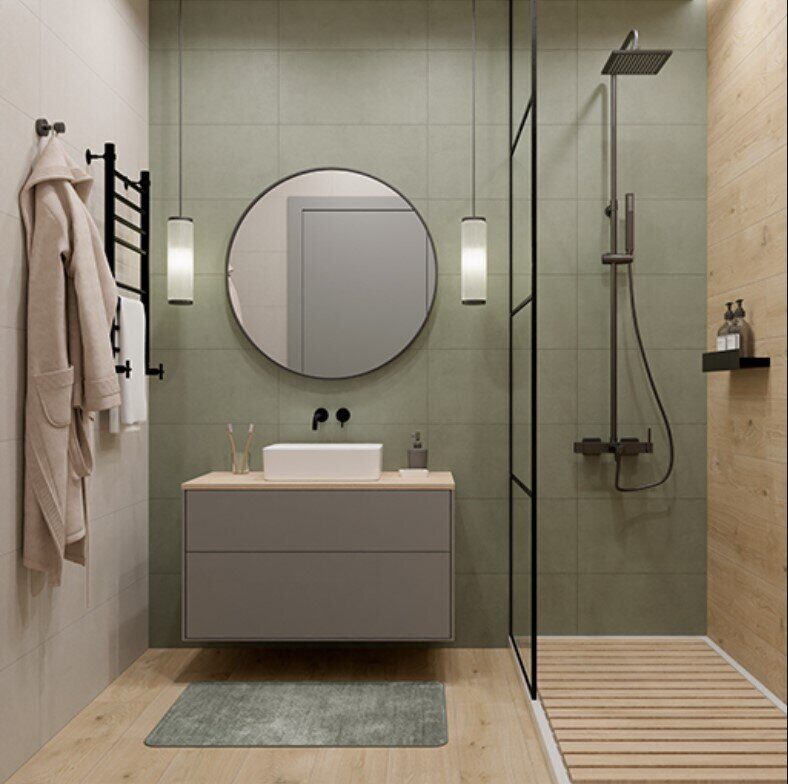 Проект № 8 Небольшой санузел: актуальный зеленый и дерево 1,5х2,2х2,6м, 3.3 м