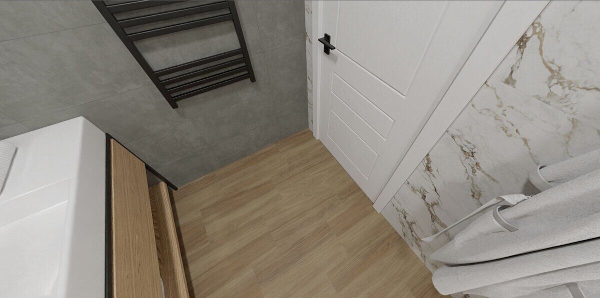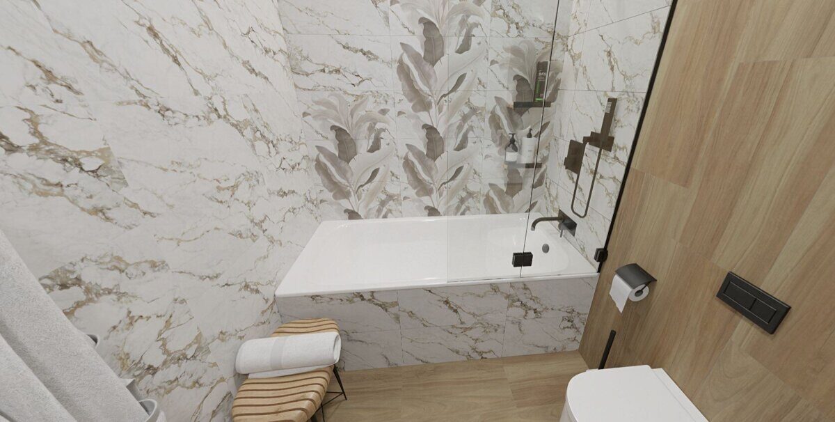Проект № 10 Совмещенный санузел:Белый мрамор, дерево 2,5х1,7х2,6м, 4.25 м
